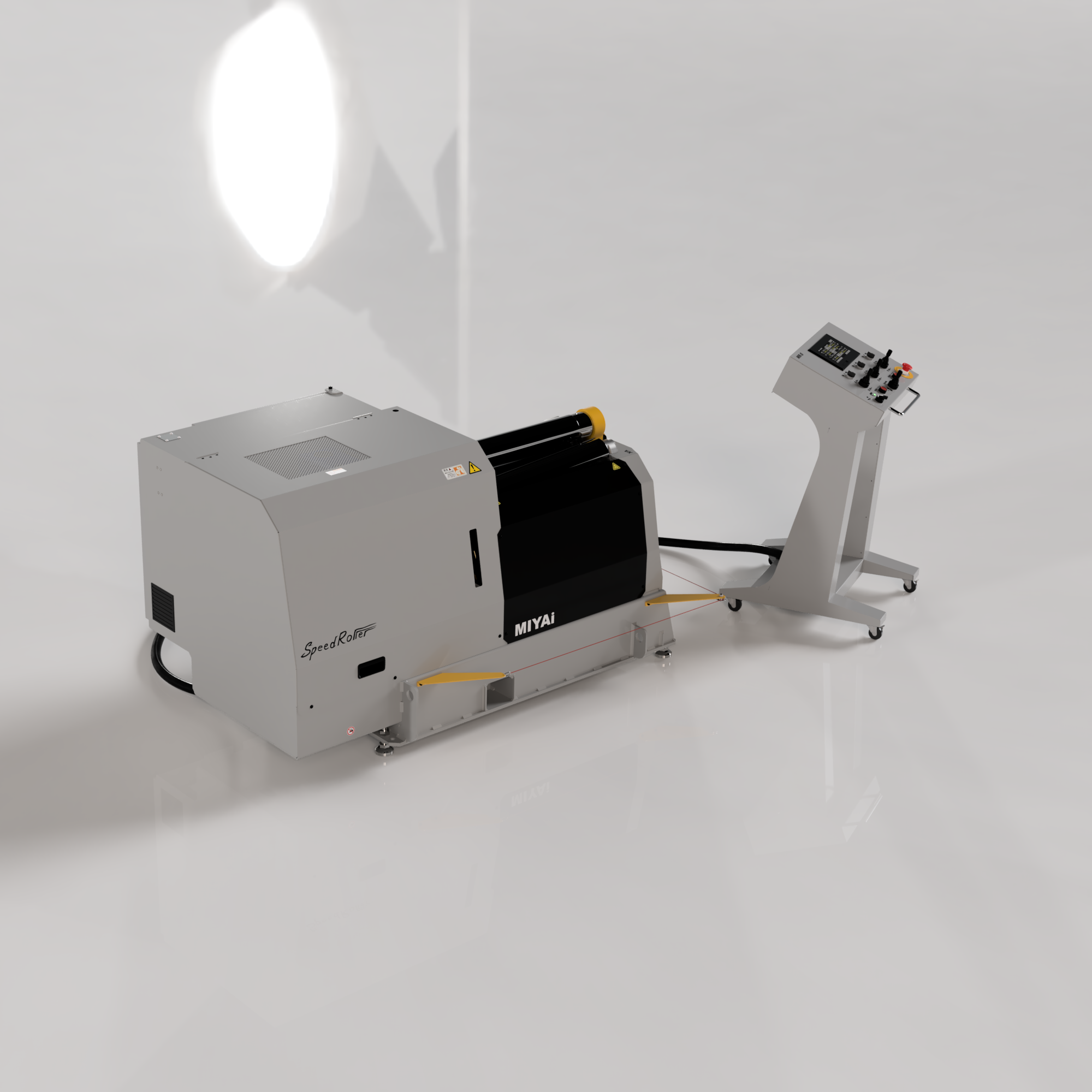 油圧駆動により、圧倒的な加圧力を実現し エンコーダーフィードバックによる油圧制御により、高精度かつ高い繰り返し性を実現いたしました。また油圧駆動のため過負荷による機構部分の破損がありません。各ロールの送りと昇降操作は操作盤より一元操作が可能です。